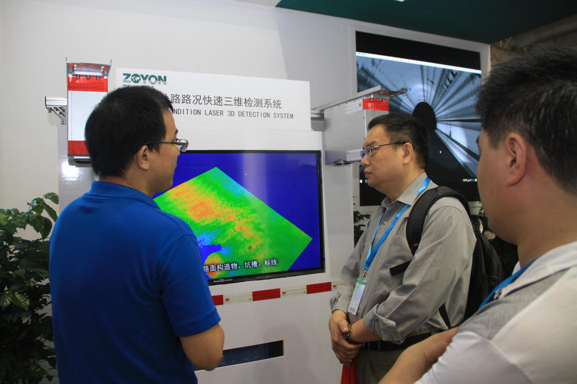 23日上午,交通運(yùn)輸部黨組成員李建波,中國公路學(xué)會(huì)理事長、原交通運(yùn)輸部副部長翁孟勇、中國智能交通協(xié)會(huì)理事長吳忠澤、交通運(yùn)輸部總工程師周偉、科技部高新司副司長續(xù)超前、工信部裝備司副司長孫峰、武警交通指揮部司令部許鋼鋒副司令員蒞臨武大卓越展臺(tái)。武大卓越董事長兼總裁曹民先生向李建波等一行領(lǐng)導(dǎo)詳細(xì)介紹了國內(nèi)首臺(tái)自主研發(fā)的快速隧道檢測系統(tǒng),在不影響正常交通行駛的情況下,以每小時(shí)60公里的速度對(duì)隧道進(jìn)行全面的檢測,解決了以往檢測的人員安全、檢測效率低下以及檢測準(zhǔn)確性低下的問題。李建波聽到曹民先生的匯報(bào)后對(duì)快速隧道檢測系統(tǒng)表示高度贊賞及認(rèn)可,并希望武大卓越快速測量系統(tǒng)能助陣各隧道養(yǎng)護(hù)單位,及時(shí)反映、了解隧道狀態(tài)和問題,實(shí)行及時(shí)性養(yǎng)護(hù),規(guī)避隧道安全事故的發(fā)生。