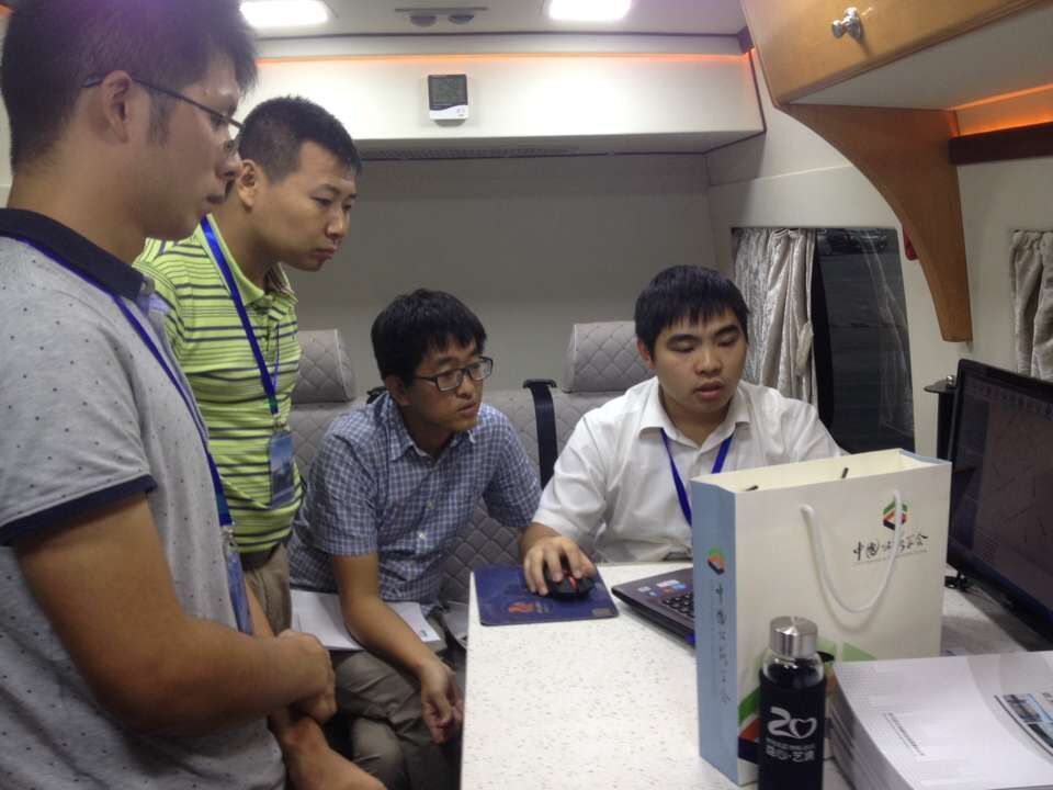 圖為卓越科技工作工作人員為客戶介紹公路路況快速三維檢測系統(tǒng)