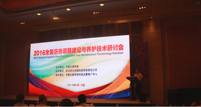 8月25日,2016全國瀝青道路建設與養(yǎng)護技術研討會在遼寧省大連市舉行。此次會議由中國公路學會主辦,武漢武大卓越科技有限責任公司協(xié)辦,中國公路學會科技成果推廣中心承辦。交通運輸部公路局養(yǎng)護保通處處長王松波、交通運輸部路網(wǎng)中心副處長虞麗云、交通運輸部公路科學研究院交通公路工程研究中心主任徐劍、中國公路學會副秘書長巨榮云、武漢武大卓越科技有限責任公司總工程師林紅等多位行業(yè)專家以及300余名業(yè)內人士參加了此次研討會。會議由中國公路學會副秘書長巨榮云主持,其中,武大卓越董事長兼總裁曹民先生發(fā)表致辭。